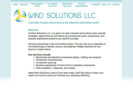 Wind Solutions provides parts and services to the industrial wind turbine sector.